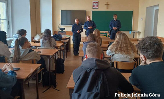 Promowanie zawodu policjanta oraz przybliżenie młodym ludziom możliwości, jakie daje służba w tej formacji, było głównym celem spotkania jeleniogórskich policjantów z uczniami klas maturalnych z Zespołu Szkół Technicznych i Branżowych w Jeleniej Górze. Policjanci przedstawili młodzieży realia służby, zasady rekrutacji oraz możliwości rozwoju zawodowego w Policji.