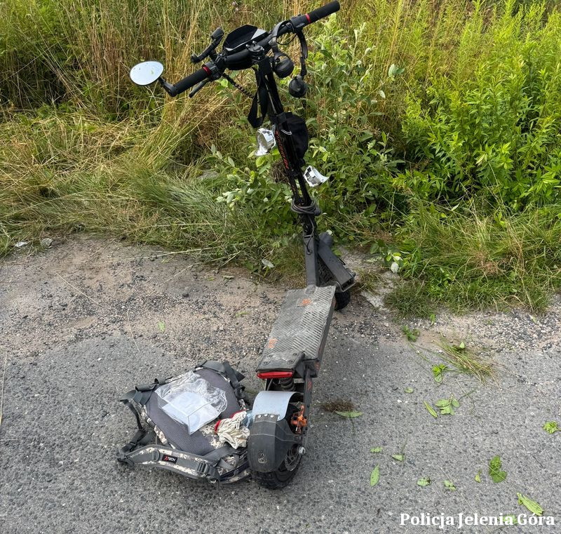 Dzisiaj (31.07.25r.), około godziny 6.40, w Staniszowie (gmina Podgórzyn), na ulicy Witosza, doszło do groźnie wyglądającego zdarzenia drogowego z udziałem użytkownika hulajnogi elektrycznej. Jak ustalili policjanci z Wydziału Ruchu Drogowego Komendy Miejskiej Policji w Jeleniej Górze, 53-letni mężczyzna poruszający się hulajnogą elektryczną nagle stracił panowanie nad pojazdem i uderzył w przepust drogowy znajdujący się przy krawędzi jezdni.