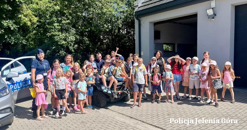 Dzieci z półkolonii zwiedziły Komisariat Policji w Kowarach