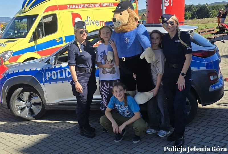 Jeleniogórską Policję reprezentowały funkcjonariuszki z Zespołu Komunikacji Społecznej Komendy Miejskiej Policji w Jeleniej Górze. Policjantki aktywnie uczestniczyły w imprezie, dbając o dobrą atmosferę i oferując dzieciom wiele atrakcji. Najmłodsi z wielkim entuzjazmem oglądali policyjny radiowóz, chętnie robili sobie zdjęcia z komisarzem Lwem – policyjną maskotką – oraz mieli okazję porozmawiać z policjantkami. Rozmowy z dziećmi dotyczyły szeroko rozumianego bezpieczeństwa: jak zachować się w drodze do szkoły, jak bezpiecznie korzystać z Internetu, a także dlaczego tak ważne jest zaufanie do policjantów. Funkcjonariuszki cierpliwie odpowiadały na liczne pytania, budując pozytywny wizerunek policji jako instytucji, która pomaga i chroni.