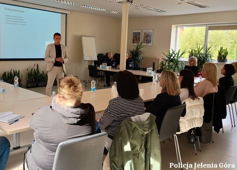 Szkolenie spotkało się z dużym zainteresowaniem uczestników, którzy aktywnie zadawali pytania i dzielili się własnymi doświadczeniami. Jeleniogórscy policjanci podkreślili, że tego typu spotkania są niezwykle ważne, ponieważ personel medyczny i pracownicy obsługi często znajdują się na pierwszej linii kontaktu z pacjentem czy klientem i to właśnie od ich reakcji zależy, czy sytuacja zostanie rozwiązana w sposób spokojny i bezpieczny.