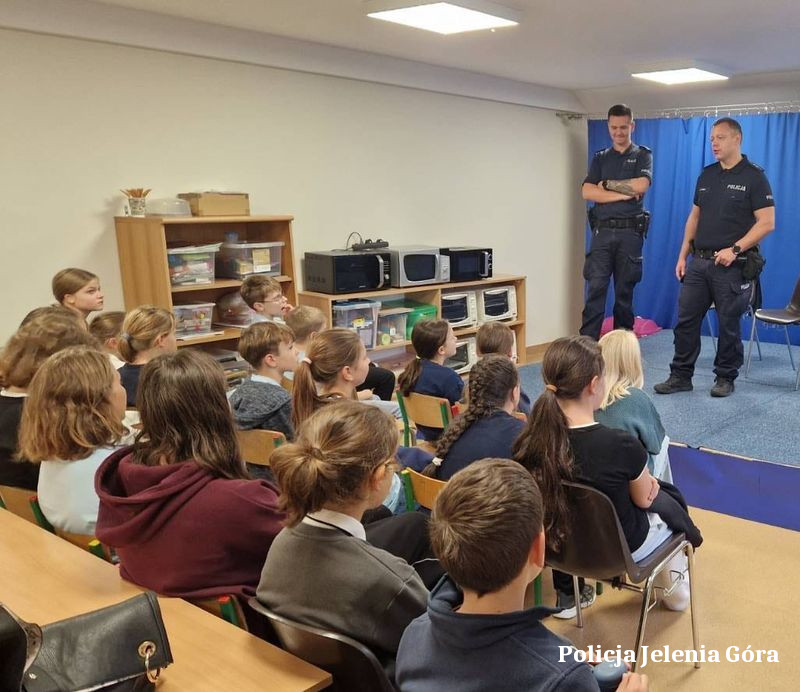 „Bezpieczna droga do szkoły” – dzielnicowi z Karpacza edukują uczniów