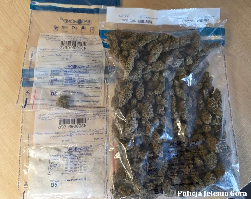 Policjanci z Kowar zatrzymali mężczyznę, który posiadał znaczne ilości narkotyków oraz kierował pojazdem wbrew zakazowi sądowemu. Został zatrzymany podczas kontroli drogowej. Łącznie funkcjonariusze zabezpieczyli środki odurzające, z których łącznie można uzyskać ponad 1300 porcji handlowych. Mężczyzna za popełnione czyny odpowie przed sądem, a grozić mu może nawet do 10 lat pozbawienia wolności.