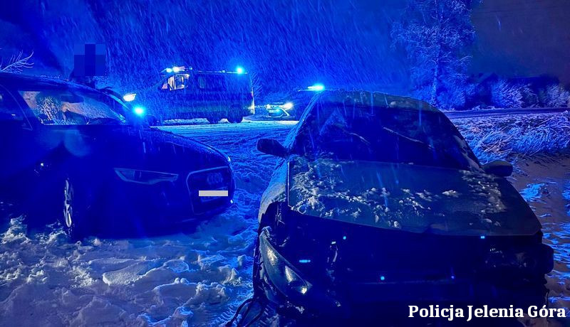 Na Szosie Czeskiej kierująca pojazdem marki Ford straciła panowanie nad samochodem i zjechała do rowu. Zaledwie kilka godzin później na tej samej drodze doszło do kolejnego zdarzenia – kierujący Audi, również jadąc z nadmierną prędkością, jak na oblodzoną nawierzchnię, doprowadził do zderzenia z pojazdem marki Renault.