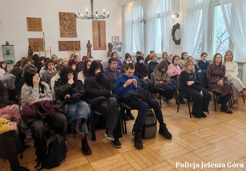 16 grudnia 2025 roku dzielnicowi z Komisariatu II Policji w Jeleniej Górze spotkali się z uczniami Zespołu Szkół Rzemiosł Artystycznych w Jeleniej Górze. Podczas spotkania poruszono temat szeroko rozumianego bezpieczeństwa, ze szczególnym uwzględnieniem problematyki hejtu, mowy nienawiści oraz przestępstw z nienawiści, a także zasad bezpieczeństwa w ruchu drogowym.