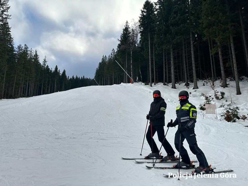 W sobotę tj. 17 stycznia 2026 roku jeleniogórscy policjanci prowadzili działania edukacyjno-prewencyjne dla najmłodszych na stokach w Karpaczu, w ramach których edukowali najmłodszych w zakresie bezpiecznej zabawy na śniegu i bezpiecznych zachowań na stoku. Mundurowi szczególną uwagę zwrócili na konieczność jazdy na nartach w kasku, a także najmłodszym rozdawali odblaski.