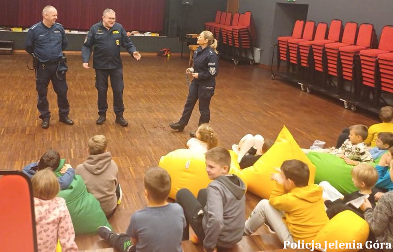 2 stycznia 2026 roku policjantka Zespołu Komunikacji Społecznej Komendy Miejskiej Policji w Jeleniej Górze wspólnie z dzielnicowymi z Komisariatu I i II Policji w Jeleniej Górze oraz strażnikami miejskimi odwiedziła dzieci spędzające ferie zimowe w Młodzieżowym Domu Kultury oraz w Osiedlowym Domu Kultury w Jeleniej Górze.