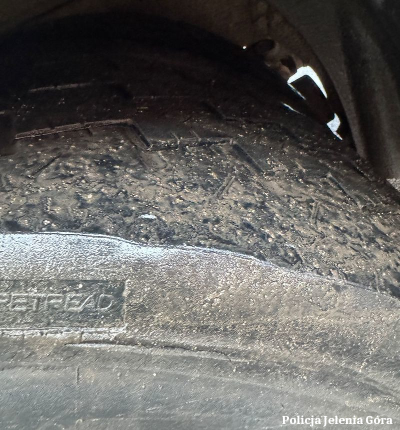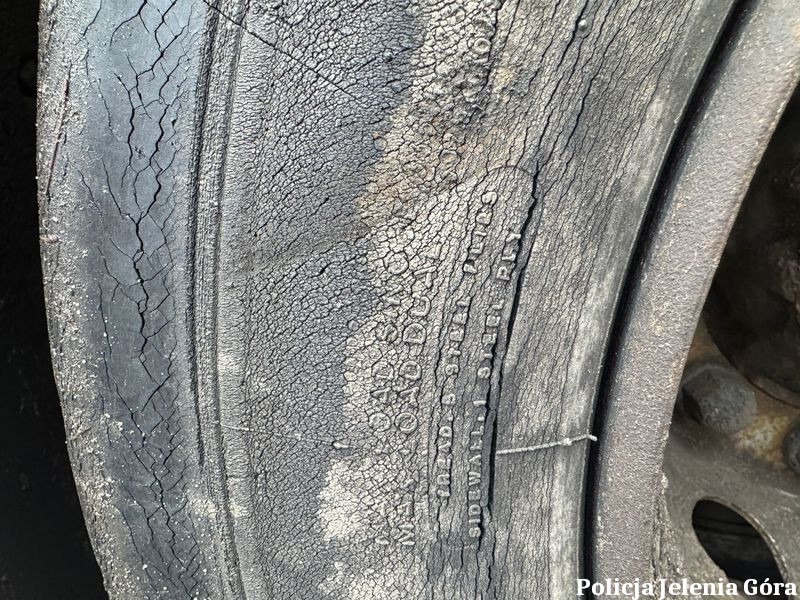 Kolejna niebezpieczna sytuacja miała miejsce 13 lutego br., około godziny 9.20 na ulicy Karola Miarki w Jeleniej Górze. Policjanci jeleniogórskiej drogówki zatrzymali do kontroli 66-letniego kierującego pojazdem ciężarowym marki Scania. W trakcie czynności okazało się, że opony tylnej osi były nadmiernie wyeksploatowane i stwarzały realne zagrożenie w ruchu drogowym. Ponadto pojazd nie posiadał wymaganych tablic wyróżniających, a kierowca nie korzystał z pasów bezpieczeństwa.