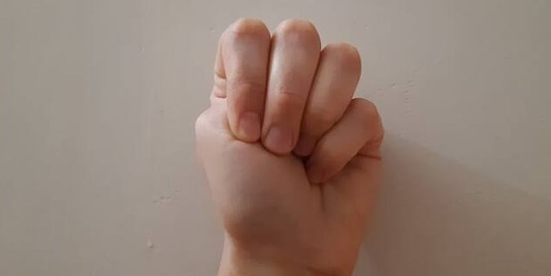 Wykonanie tego znaku jest proste: Pokaż otwartą dłoń. Złóż dłoń w pięść chowając kciuk do środka.